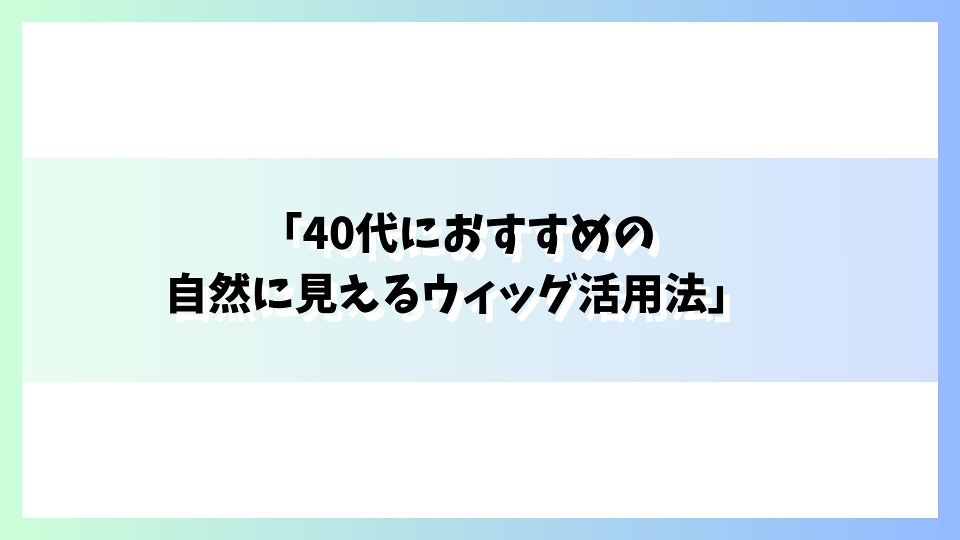 40代だからこそ、自分らしく自然に使えるウィッグを味方にして、生活をより豊かに彩っていけたら素敵ですね。